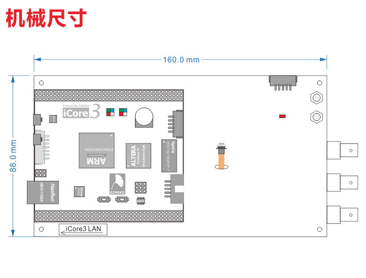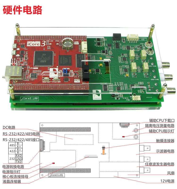 1、結構: 採用iCore3核心板加擴展板的模式,完全繼承iCore3核心板的優勢;