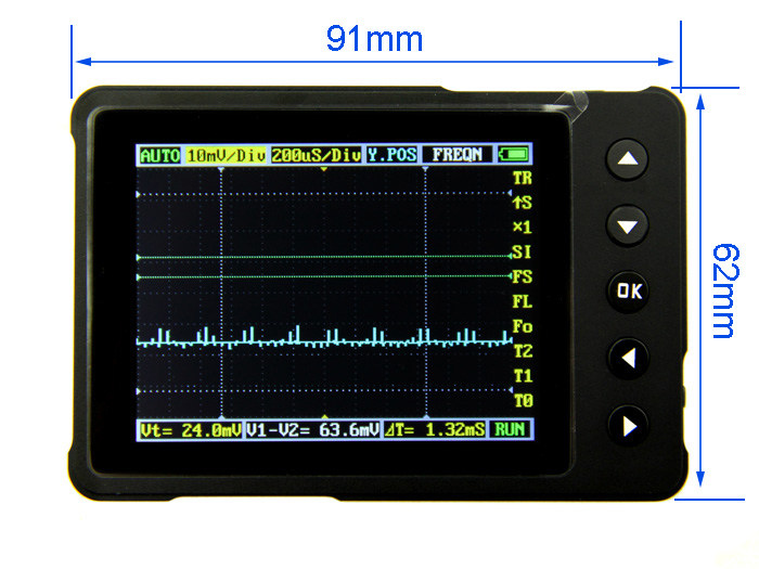 The DSO Nano V3 is a pocket-size compatible 32bit digital storage oscilloscope. Based on ARM -M3, it’s equipped with 320*240 color display, SD card, USB port and recharging function. It’s compact, simple to operate; meets the basic demands of school lab, electric furniture repairment and electric engineering.