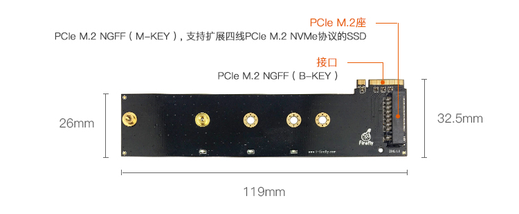 >(缺貨)Firefly RK3399 加購 PCIe M.2(B-KEY) to SSD轉接板