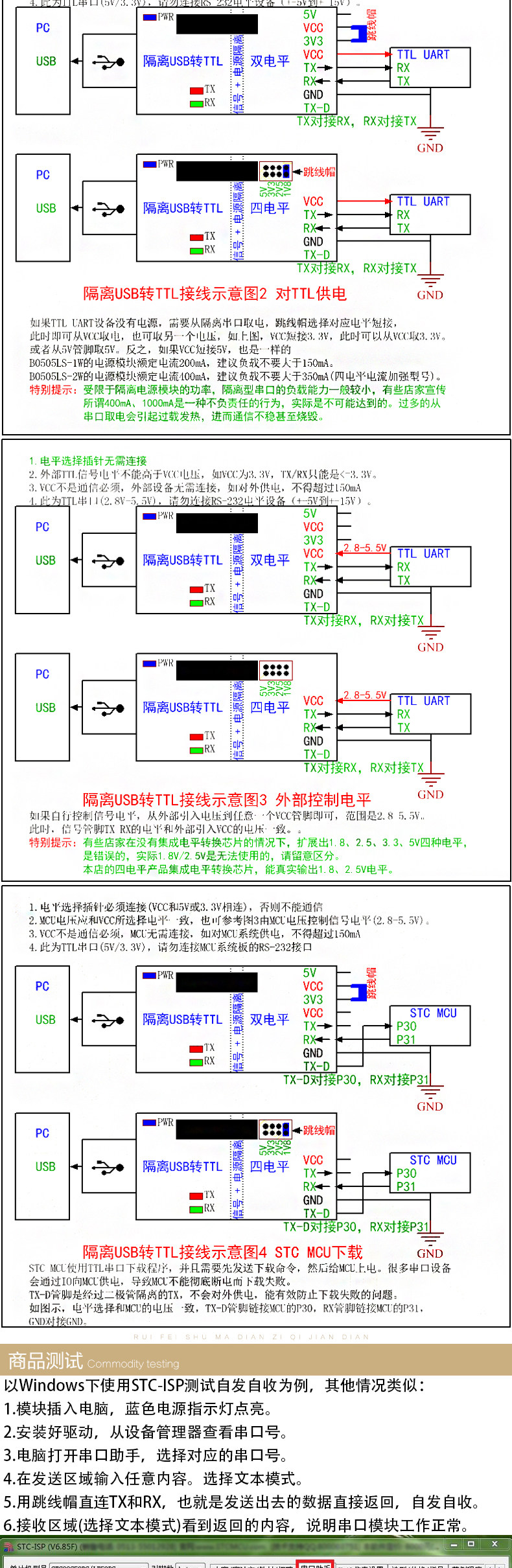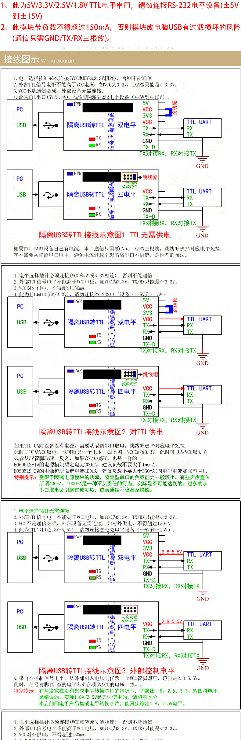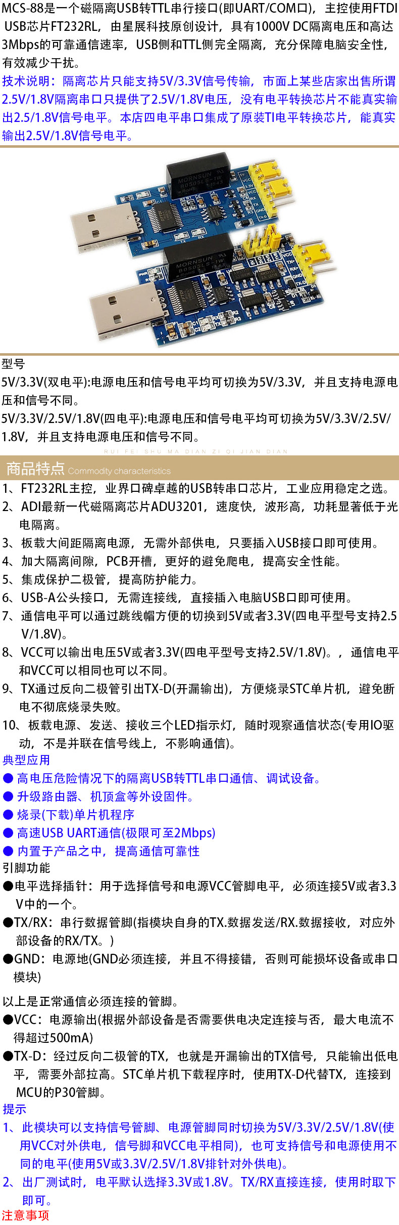英國原裝晶片 FTDI FT232RL(隔離版本,四電平)、USB 轉 TTL串口 5V~1.8V