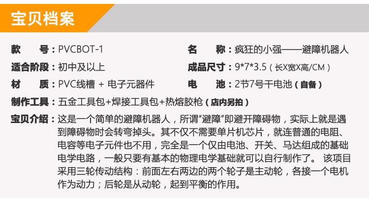 PVCBOT【1號A】瘋狂的小強·避障機器人