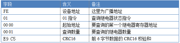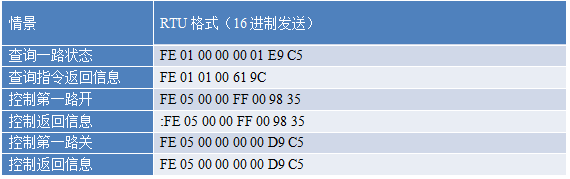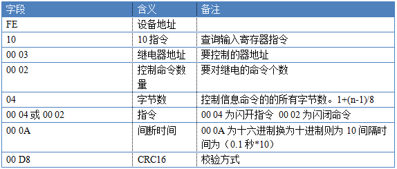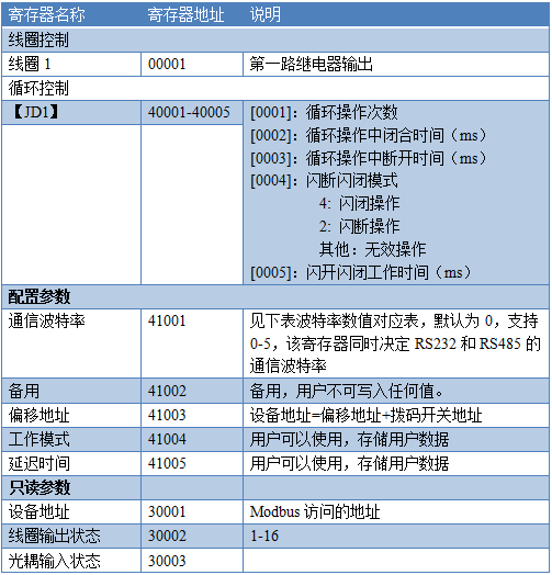 指令生成說明:對於下表中沒有的指令,用戶可以自己根據modbus協議生成,對於繼電器線圈的讀寫,實際就是對modbus寄存器中的線圈寄存器的讀寫,上文中已經說明了繼電器寄存器的地址,用戶只需生成對寄存器操作的讀寫指令即可。例如讀或者寫繼電器1的狀態,實際上是對繼電器1對應的線圈寄存器0001的讀寫操作。