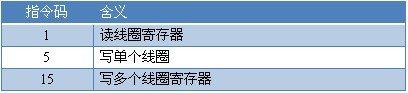 本控制卡主要為線圈寄存器,主要支持以下指令碼:1、5、15