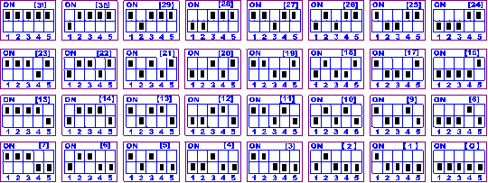 1、五個撥碼全都撥到“ON”位置時,為地址“31”;