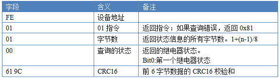 關閉狀態下返回:FE 01 01 00 61 9C