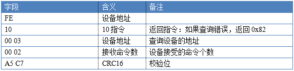 返回碼:FE 10 00 03 00 02 A5 C7