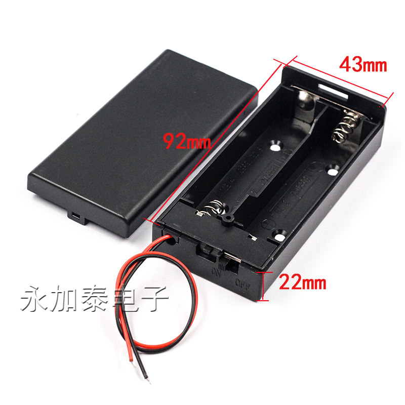 2節電池盒帶開關-串聯(18650電池3.7Vx2 = 7.4V 電壓增加) 帶引線