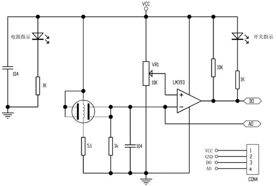 說明:1、當測量濃度大於設定濃度時,單片機IO口輸出低電平