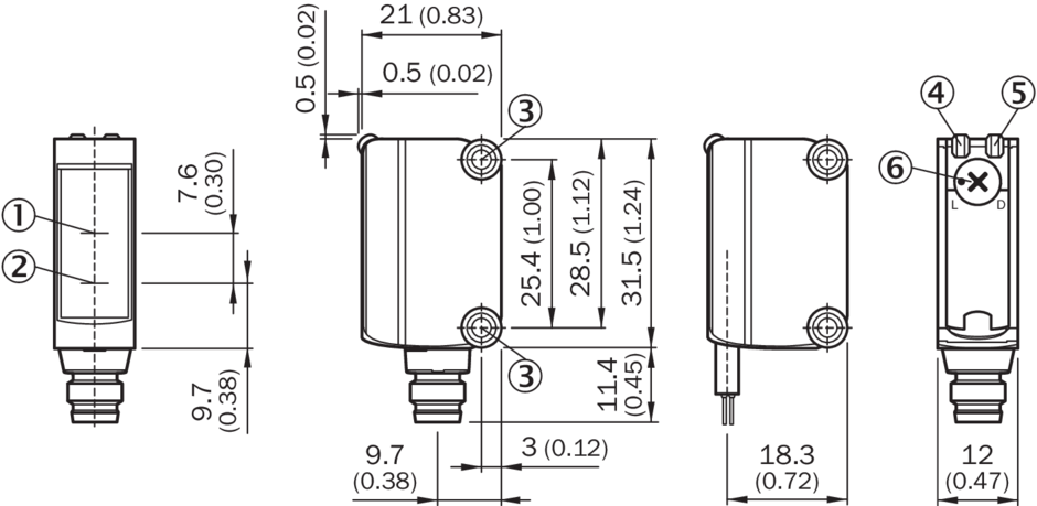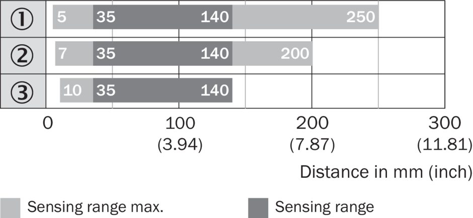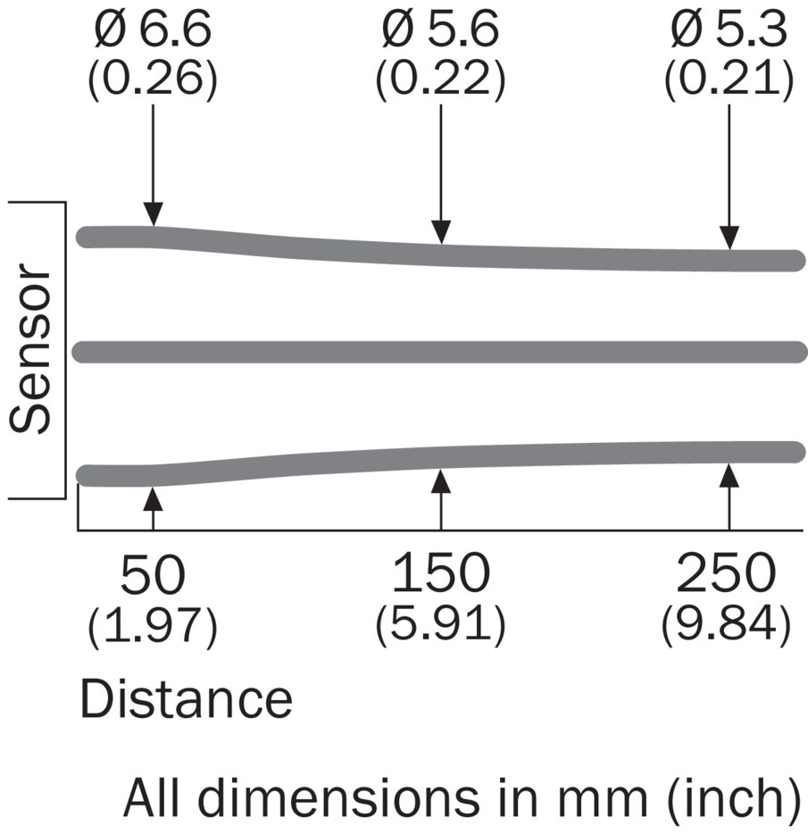| | 感測/檢測原理 | 直接反射式光電感測器, 背景遮蔽功能 | | 尺寸(寬 x 高 x 深) | 12 mm x 31.5 mm x 21 mm | | 外殼形狀(發光) | 方形 | | 最大檢測範圍 | 5 mm ... 250 mm 1) | | 檢測範圍 | 35 mm ... 140 mm | | 光源類型 | 可見紅光 | | 光投射器 | PinPoint LED針點式光點 2) | | 光點大小(距離) | Ø 6 mm (100 mm) | | 波長 | 650 nm | | 調整 | 機械式調節器,5圈 | 1) 反射率為90%的白色物體(參考DIN5033標準). 2) 平均使用壽命:100,000 h / TU = +25 °C. |