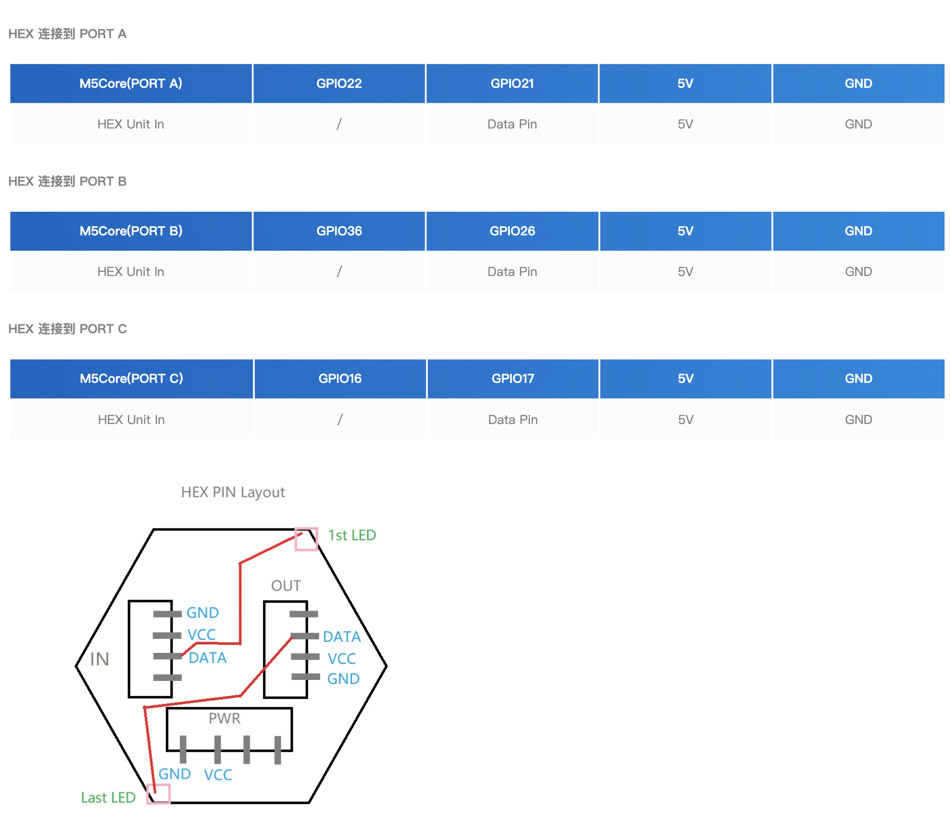 以下為HEX燈板中的LED布局排序方式