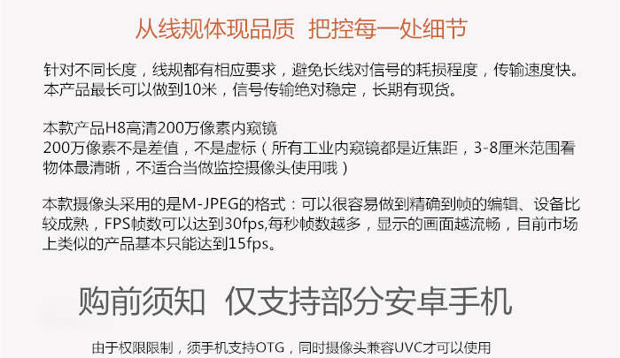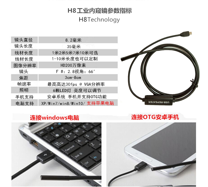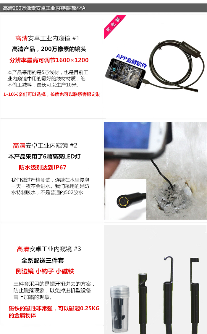 新款200萬高清工業內窺鏡適合近焦距,鏡頭距離觀察物3-8cm範圍最清晰