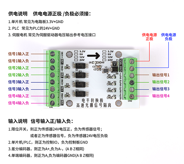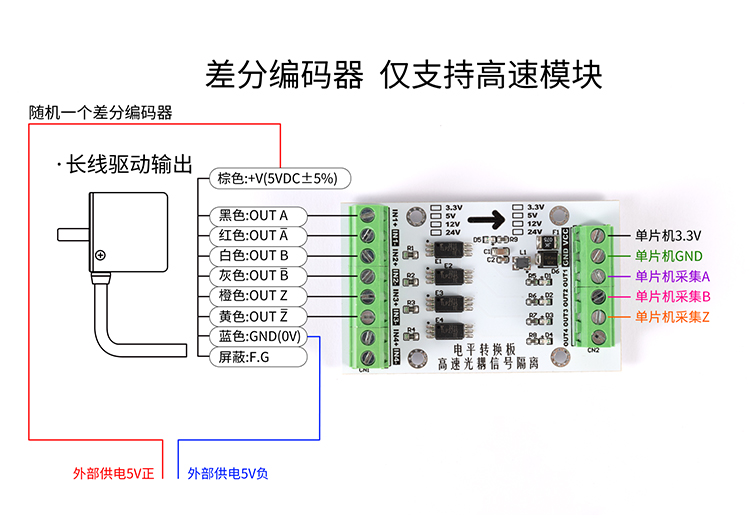 - 將差分信號轉為推挽信號輸出,兼容NPN/PNP,適用於市面上所有PLC和單片