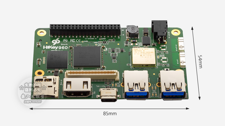 HiKey 960採用最新的Kirin 960 SoC,配備四個ARM Cortex-A73 CPU(最高2.3GHz)和四個ARM Cortex-A53 CPU(最高1.8GHz),根據big.LITTLE架構進行配置。麒麟960 SoC中集成的Mali™-G71 MP8 GPU為HiKey 960提供了高性能的圖像處理能力。HiKey 960具有4GB LPDDR4內存和32GB UFS閃存,可用於大多數嵌入式應用。