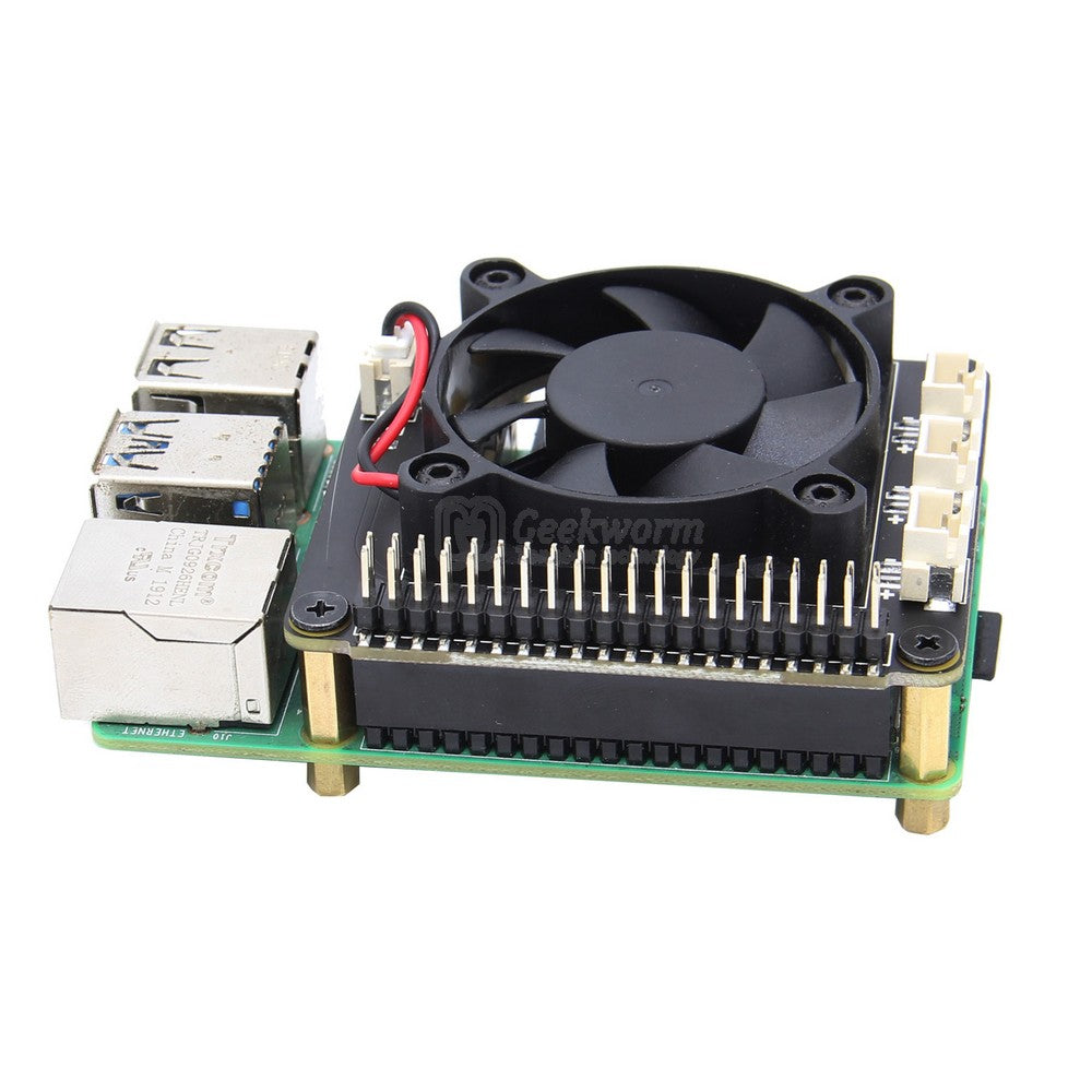 這是一款配合樹莓派4代Raspberry Pi 4B使用的風扇板,以解決在使用Raspberry Pi 4B 及其擴充板時樹莓派4發熱量大的問題。 ,適用於Raspberry Pi目前所有帶有40pin GPIO引腳的主機板(包括pi 4 / 3B + / 3B / 2B / B +)。