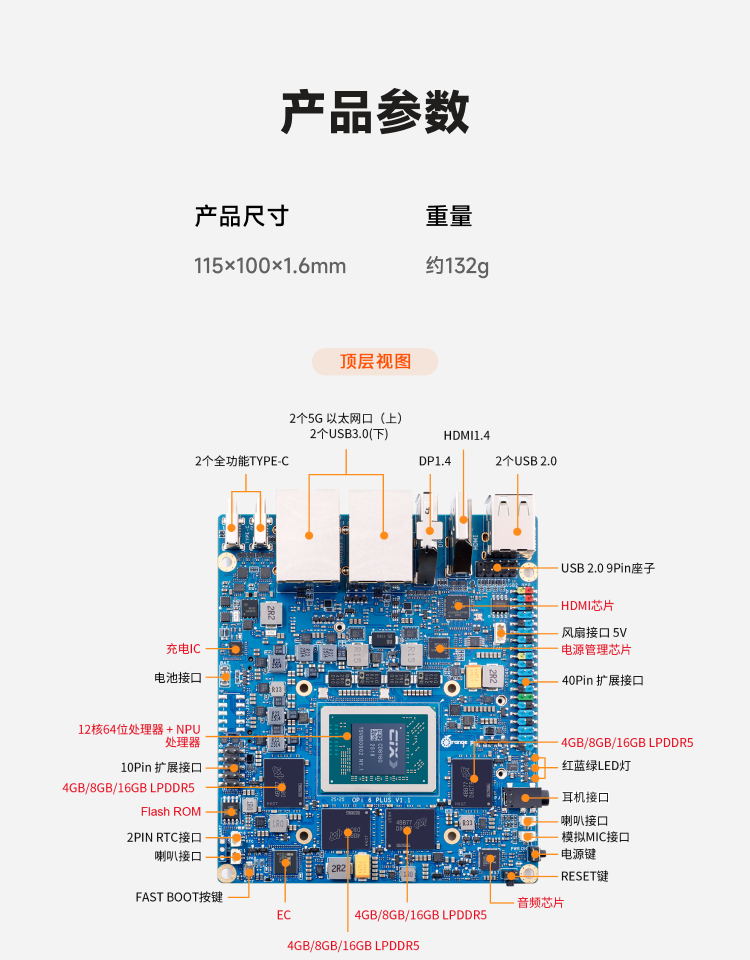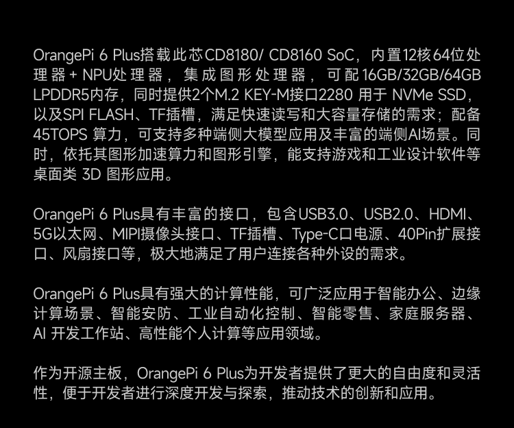 香橙派 Orange Pi6 Plus 開發板 套件(32G RAM版本+風扇),CD8160芯片 12核+NPU處理器