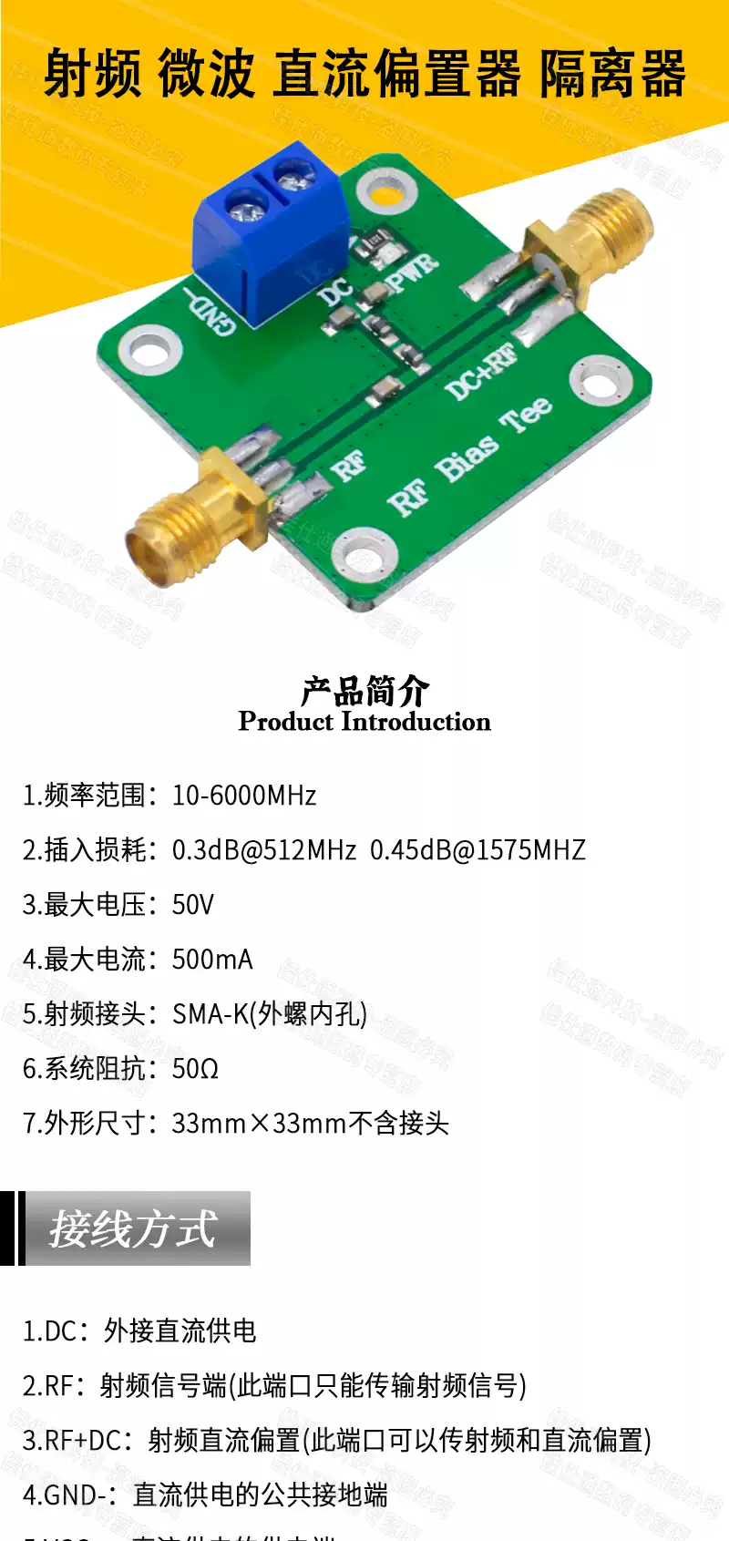 【10-6000MHz】微波射頻模組 直流偏壓隔直器 直流饋電 DC Bias