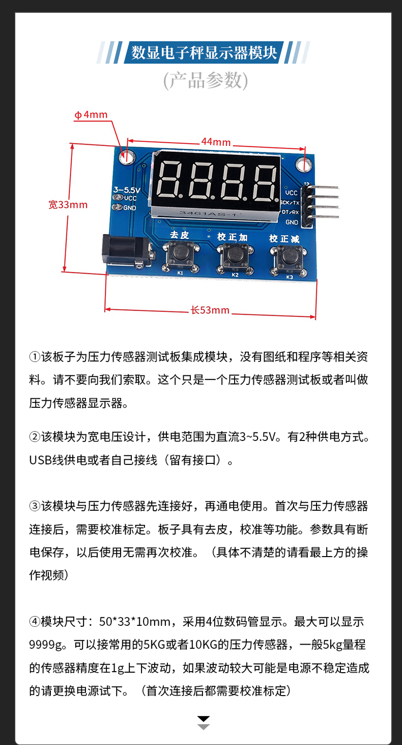 單獨顯示模組 使用說明: https://www.bilibili.com/opus/1071233618971459609 HX711、秤架資料包連結: