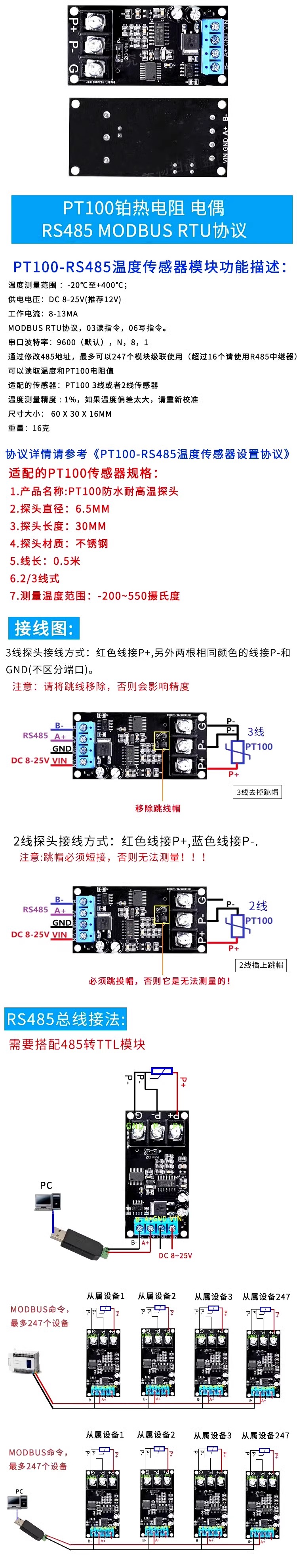PT100 溫度傳感變送器 RS485 MODUBS RTU模組