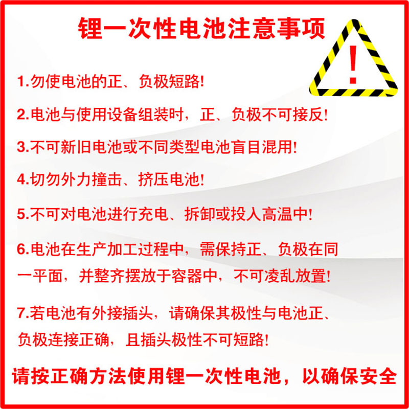 (1)嚴禁將電池正負極直接短接:將電池短路會使電池發熱或導致爆炸。