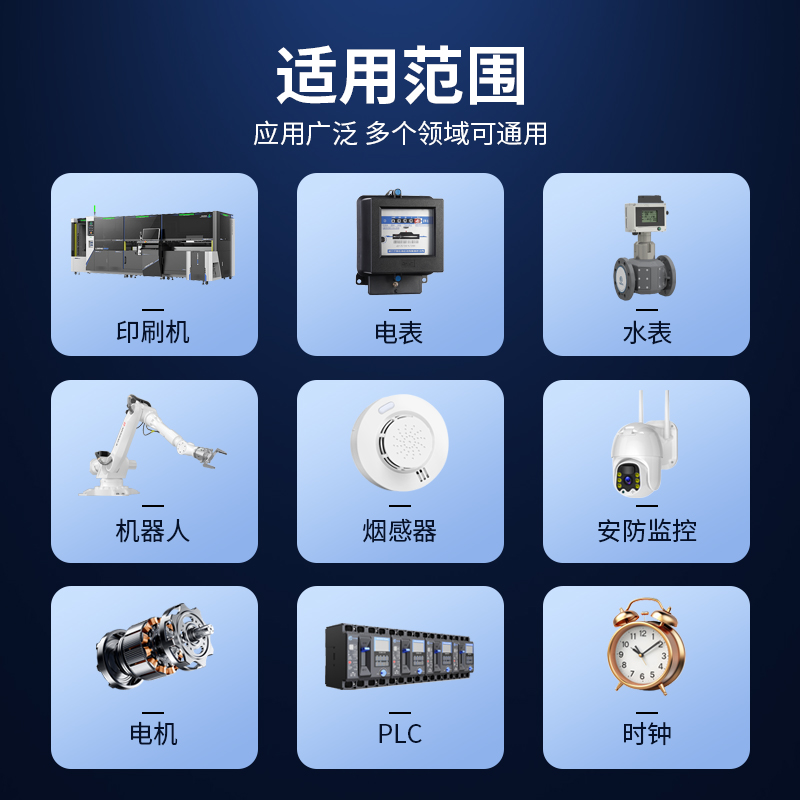 應用範圍:CNC工具機、伺服器、程式設計器、PLC、CNC、注塑機、印刷機、觸控螢幕、電錶、水錶、即時時鐘、後備記憶電源、各種測量儀器儀表、電子設備等