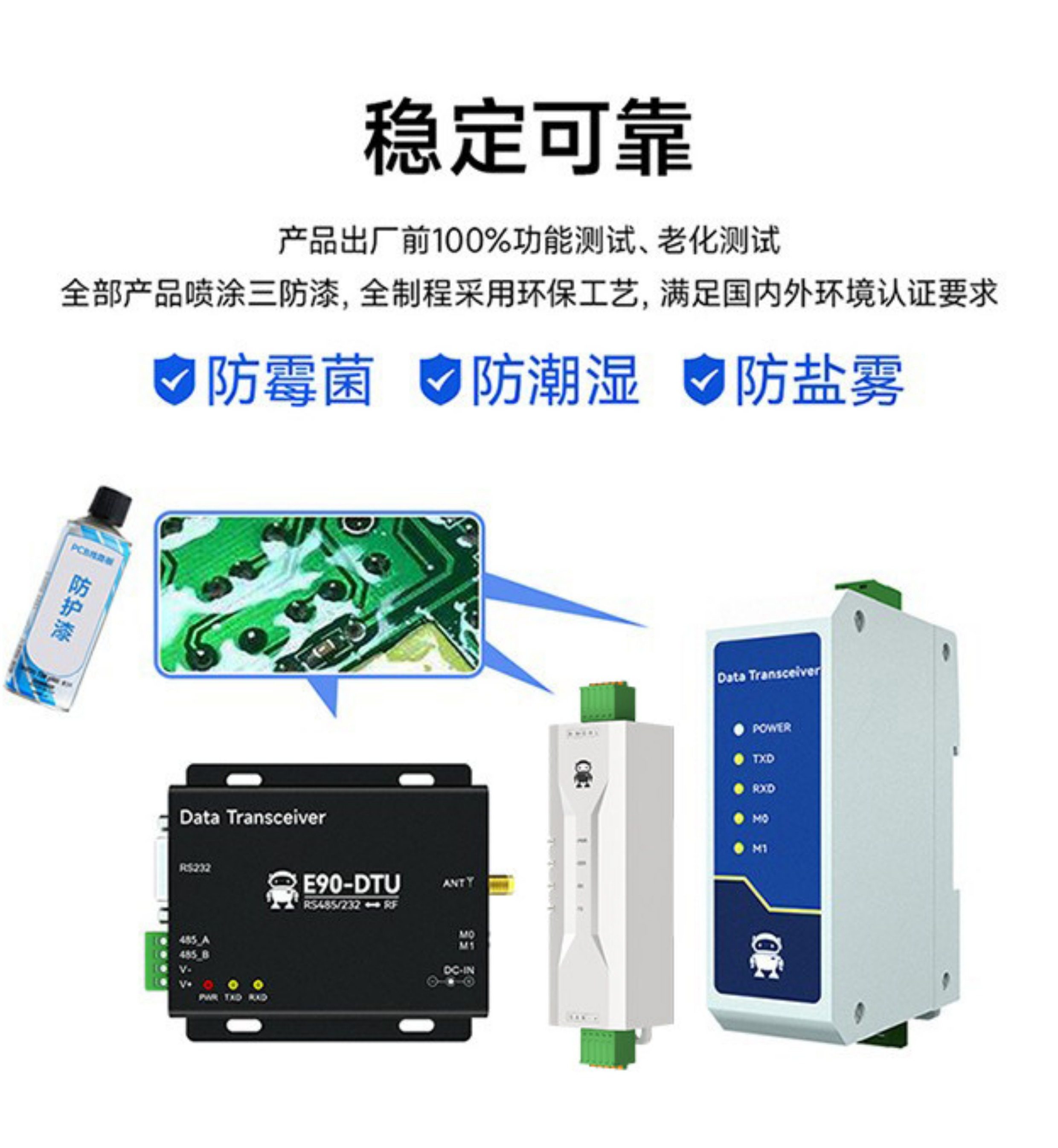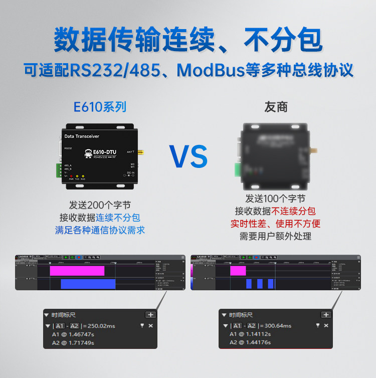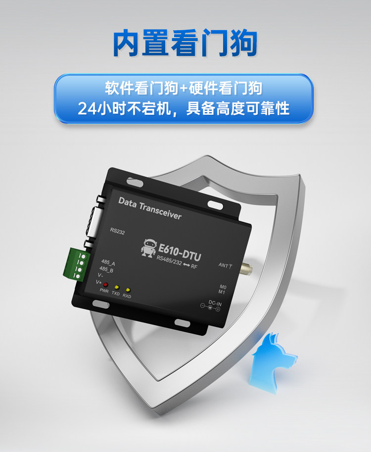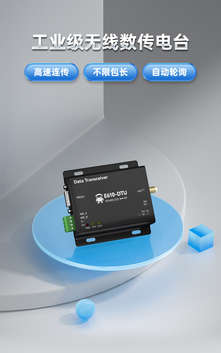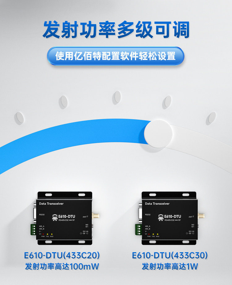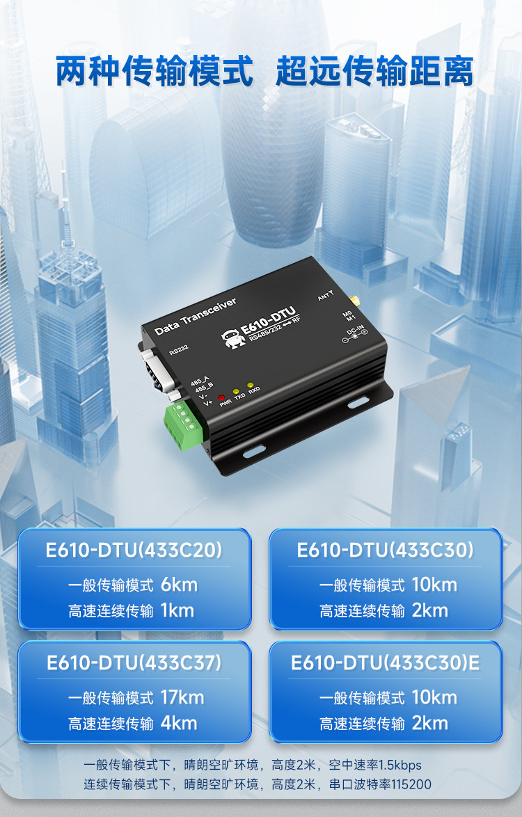 E610-DTU(433C30)【工業級】【遠距離10Km】+2A電源+天線,無線數傳電台 RS485/232 高速低延遲自動中
