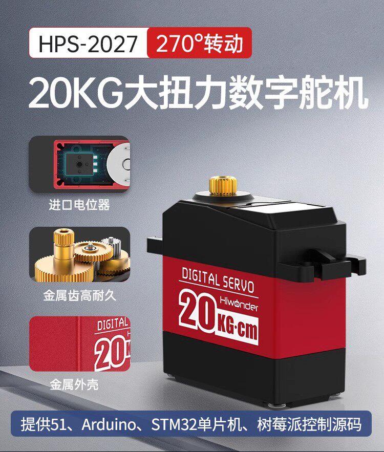(型號:HPS-2027數位舵機+金屬舵臂25T/銀灰)20Kg,單軸 數位舵機 伺服馬達 大扭力 金屬殼 齒輪270度轉動