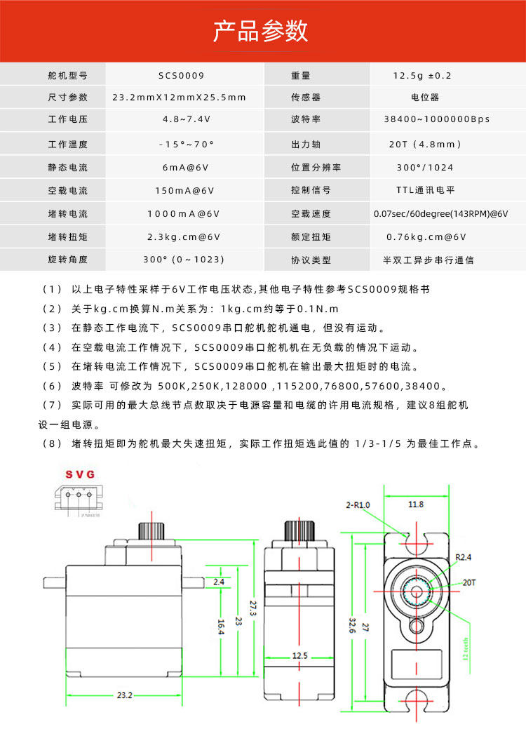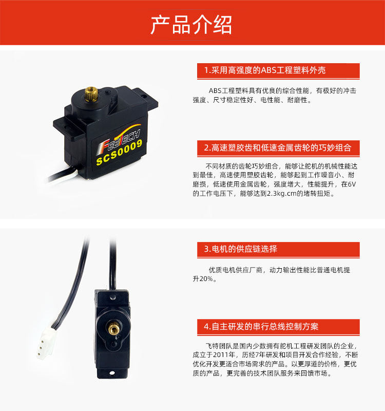 FeeTech SCS0009(單軸) 舵機 6V 2.3Kg